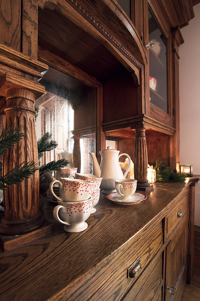 The table is set with with Ballard Designs’ Jacqueline dinnerware. I photographed the dining room for a holiday campaign they’re running, and I was able to chose a bunch of my favorite pieces to shoot and keep. We always host Christmas dinner, so this is what our table will look like this year! The cups and saucers will be especially cute when we have coffee with dessert.